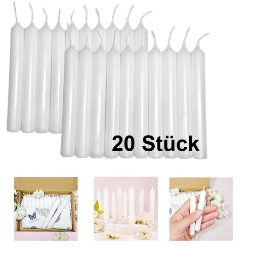 GLOWYBOX 20 Stück TROPFFREIE Geburtstagskerzen für Kerzenring Kerzen weiß für Kindergeburtstag bunte Kinderkerzen Geburtstagszug Minikerzen hergestelllt in Deutschland Baumkerzen kleine Kerzen weiß 20er